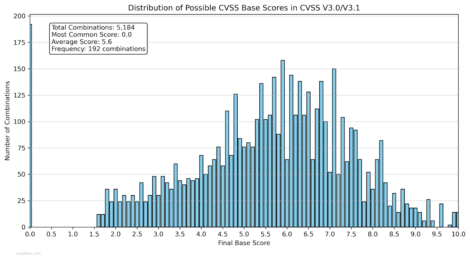 Graph 1: Possible outcomes from 0-10 in CVSS V3